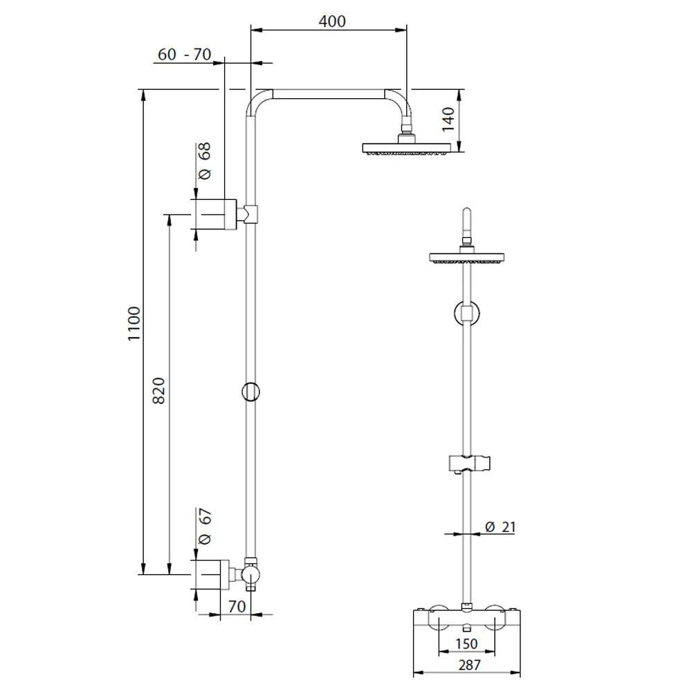 - Höhe: 1105 mm, Breite: 290 mm, Tiefe: 560 mm