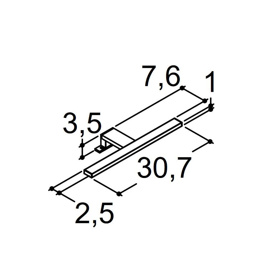 - Höhe 3,5 cm, Breite 30 cm, Tiefe 2,5 cm bzw. 10,1 cm inkl. Halterung