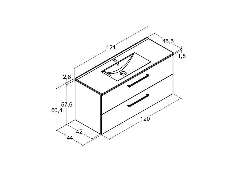 - Maße (HBT): 60,4 x 121 x 44 cm