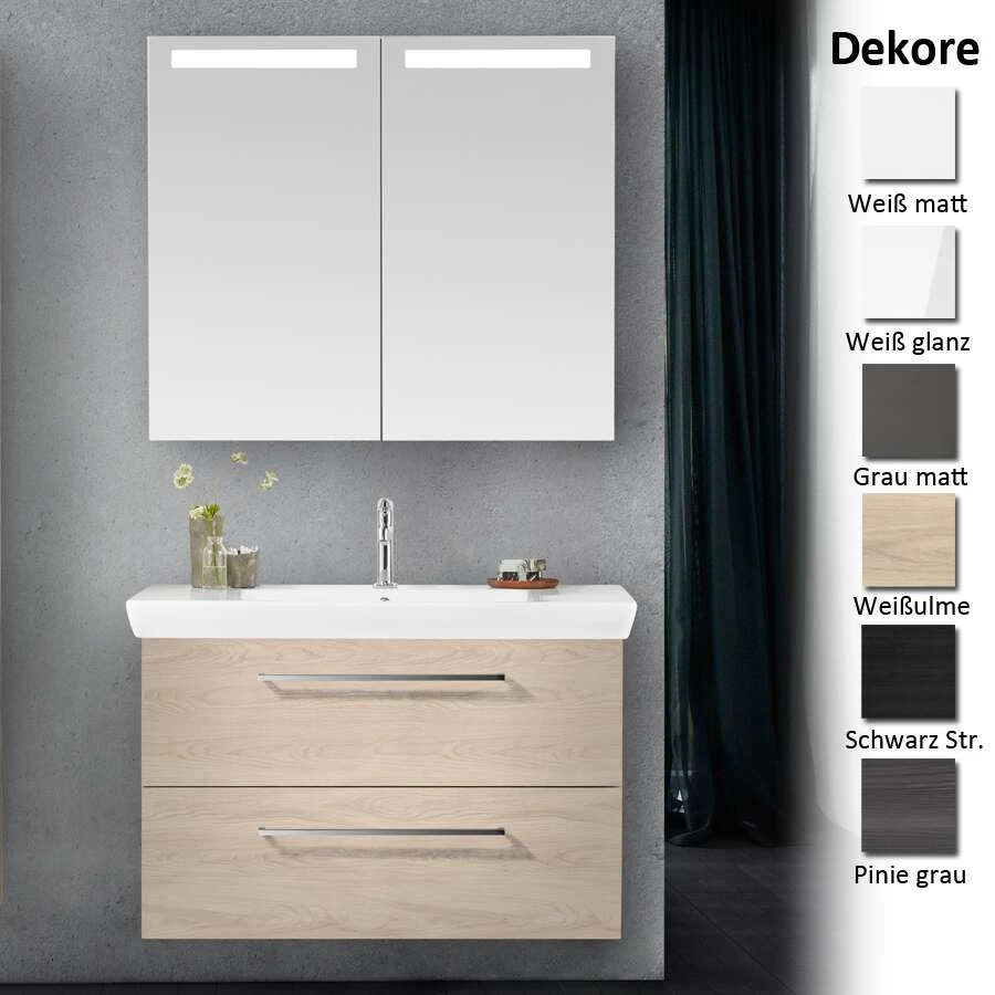 - Schränke bestehen aus 16 mm melaminbeschichteten Spanplatten mit ABS Kanten