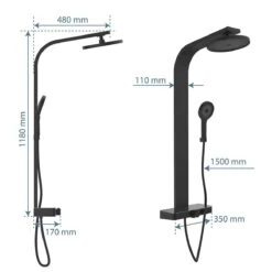 Schütte SAMOA RAIN Überkopf-Brauseset, Schwarz Matt, Mit Thermostat-Ablage