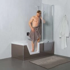 - Badewanne mit abnehmbarem Türeinsatz zur Nutzung auch als Duschwanne mit niedrigem Einstieg