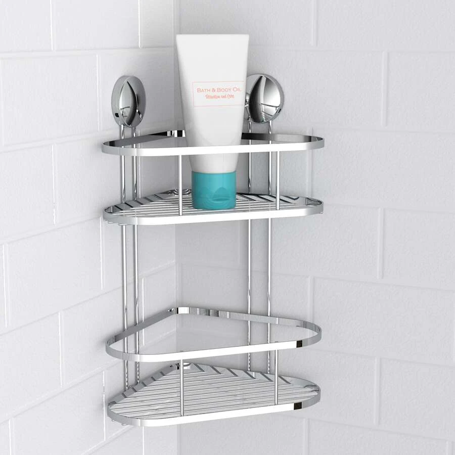 Dieser Duschkorb ohne Bohren ist einfach optimal. Durch die Eckbefestigung nimmt er kaum Platz ein und verhindert unangenehme Stösse. Die ideale Duschablage für Duschen mit wenig Platz. Die zwei Etagen bieten viel Stauraum, um Shampoo, Duschgel und vieles mehr schnell griffbereit zu haben. Das Montageset zum Kleben ist eine enfache und stabile Befestigung und vermeidet Beschädigungen am Untergrund. Gerade im Fliesenbereich eine praktische Lösung.