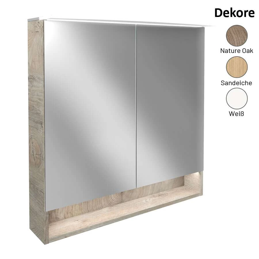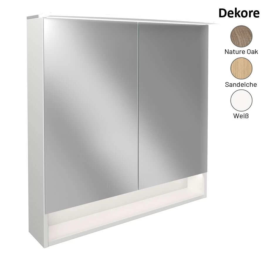 - 2 Türen mit Innenspiegel, mit LED-Paneelleuchte (Tiefe: 263 mm) beleuchtet