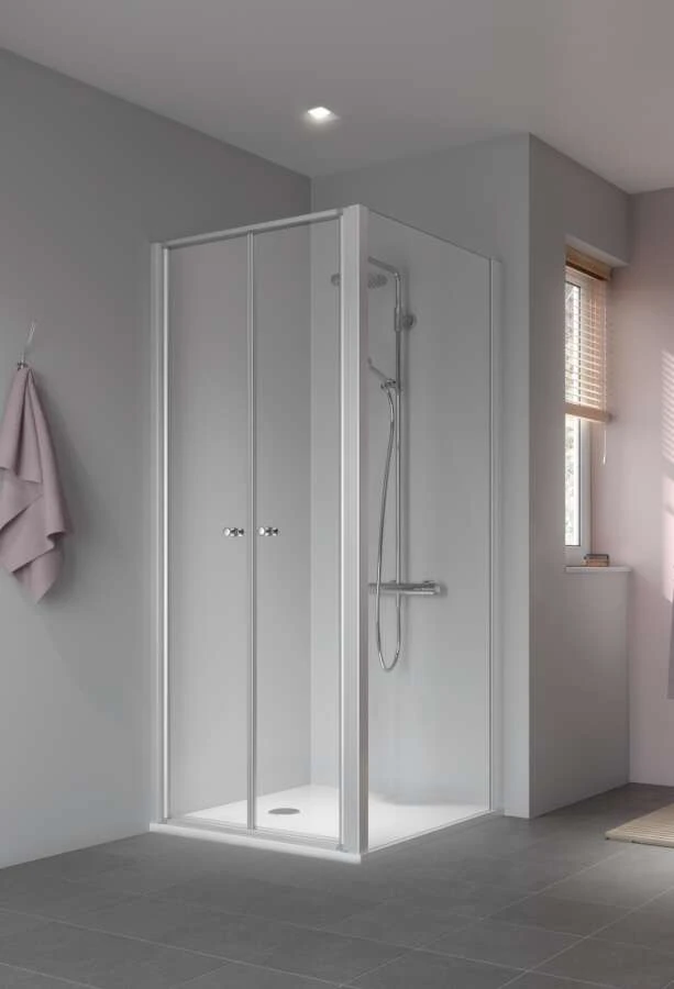Eine Duschkabine im Standardmaß wird immer kürzer als angegeben gefertigt, z. B. ca. 860 mm statt 900 mm. Fordern Sie vor der Bestellung Ihren passenden Fliesenspiegel an.