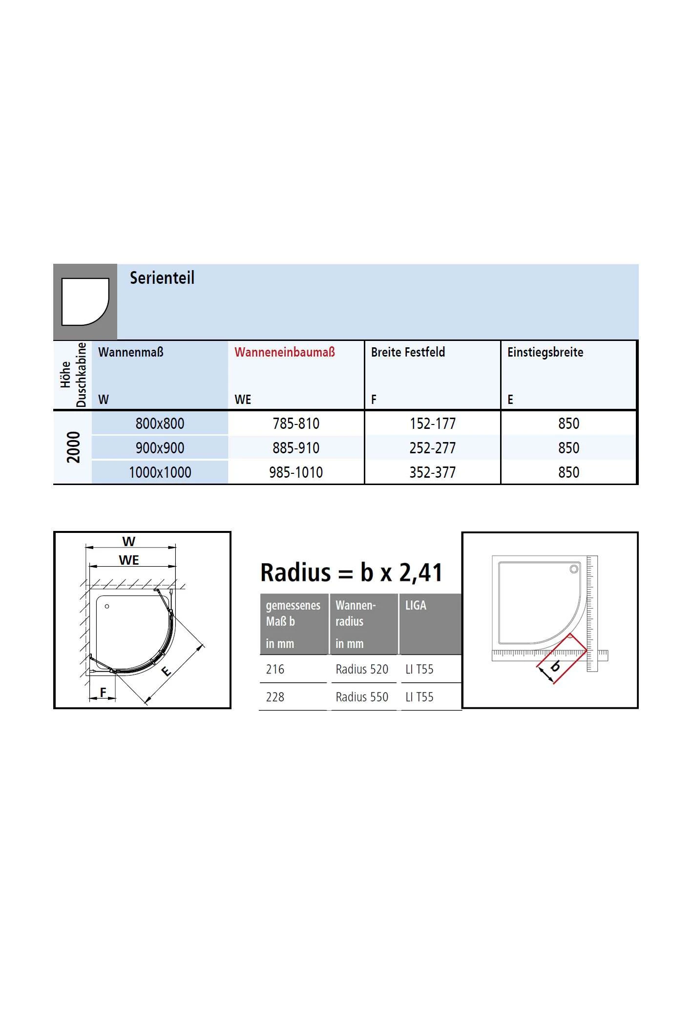 Bitte beachten Sie für den bodengleichen Einbau die Maßtabelle in den Bilddateien.