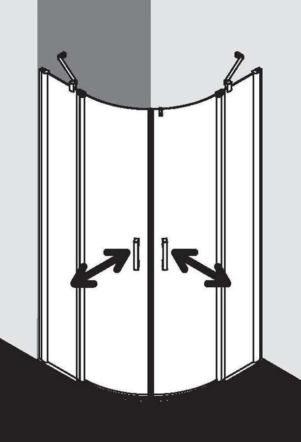 - Teilgerahmte Viertelkreis-Duschkabine PE P55 mit zwei Festfeldern und zwei Glasflügeln.