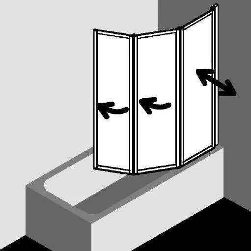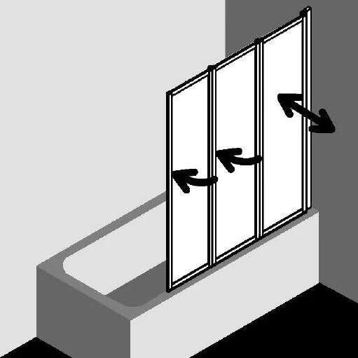 - 3 – flüglig, im Wandprofil 90° nach innen oder außen schwenkbar, 2. und 3. Flügel 180° nach innen schwenkbar