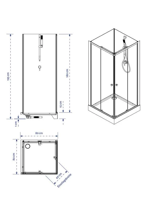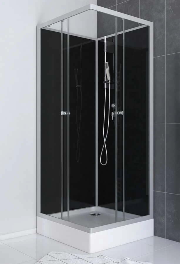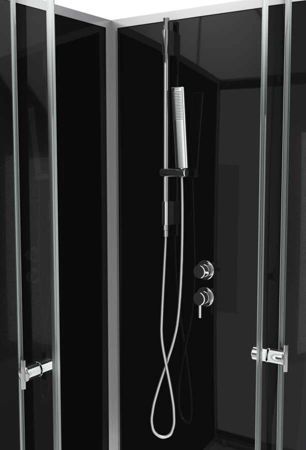 - Design Komplettduschkabine als Eckeinstieg mit aushängbaren Schiebetüren