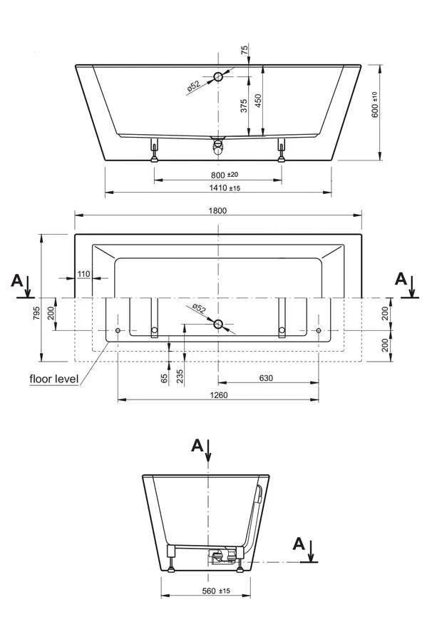 - Länge 1800 x Breite 800 x Tiefe 450 mm, Fassungsvermögen: 248 Liter, Gewicht: 55 kg