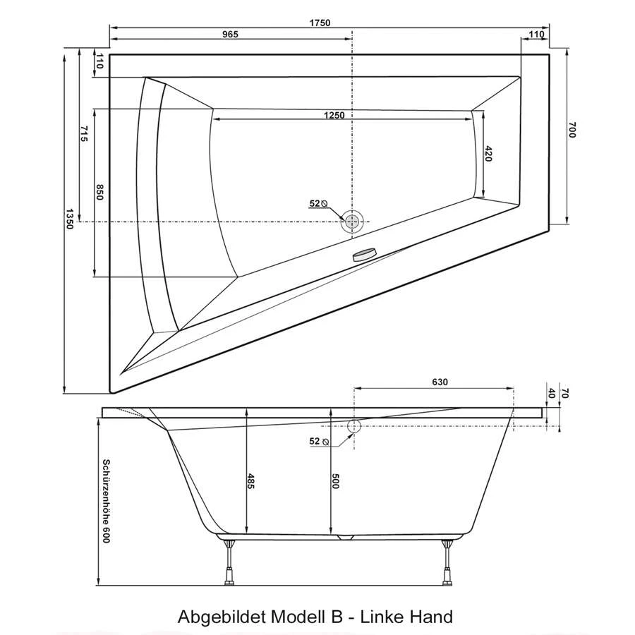 - die ausgeschriebene Badewanne in der gewünschten Konfiguration