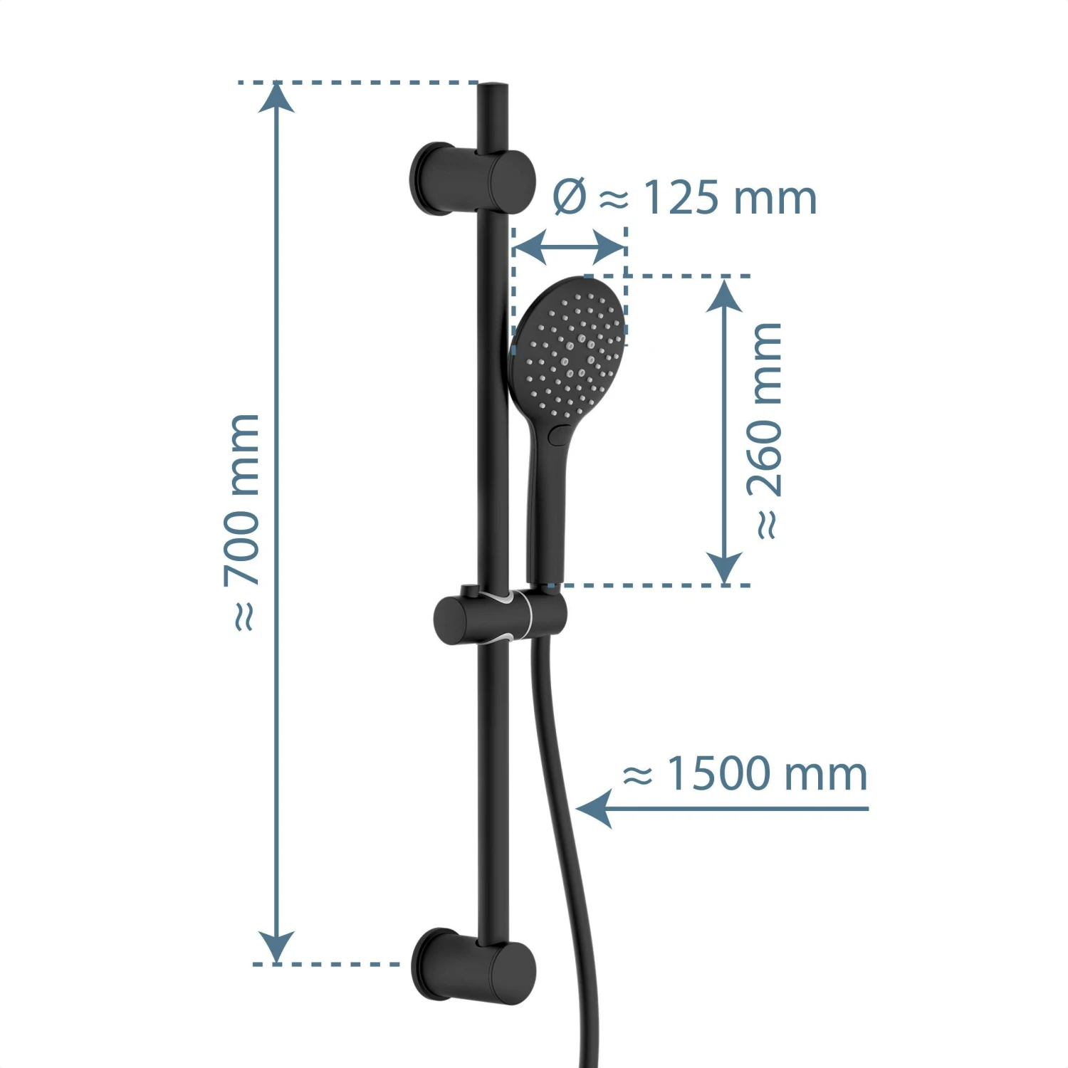 - Farbe Brausestange/ Halter: schwarz matt lackiert