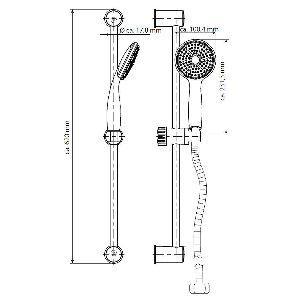 - komplettes Duschsystem mit Duschstange, Brauseschlauch und Handbrause