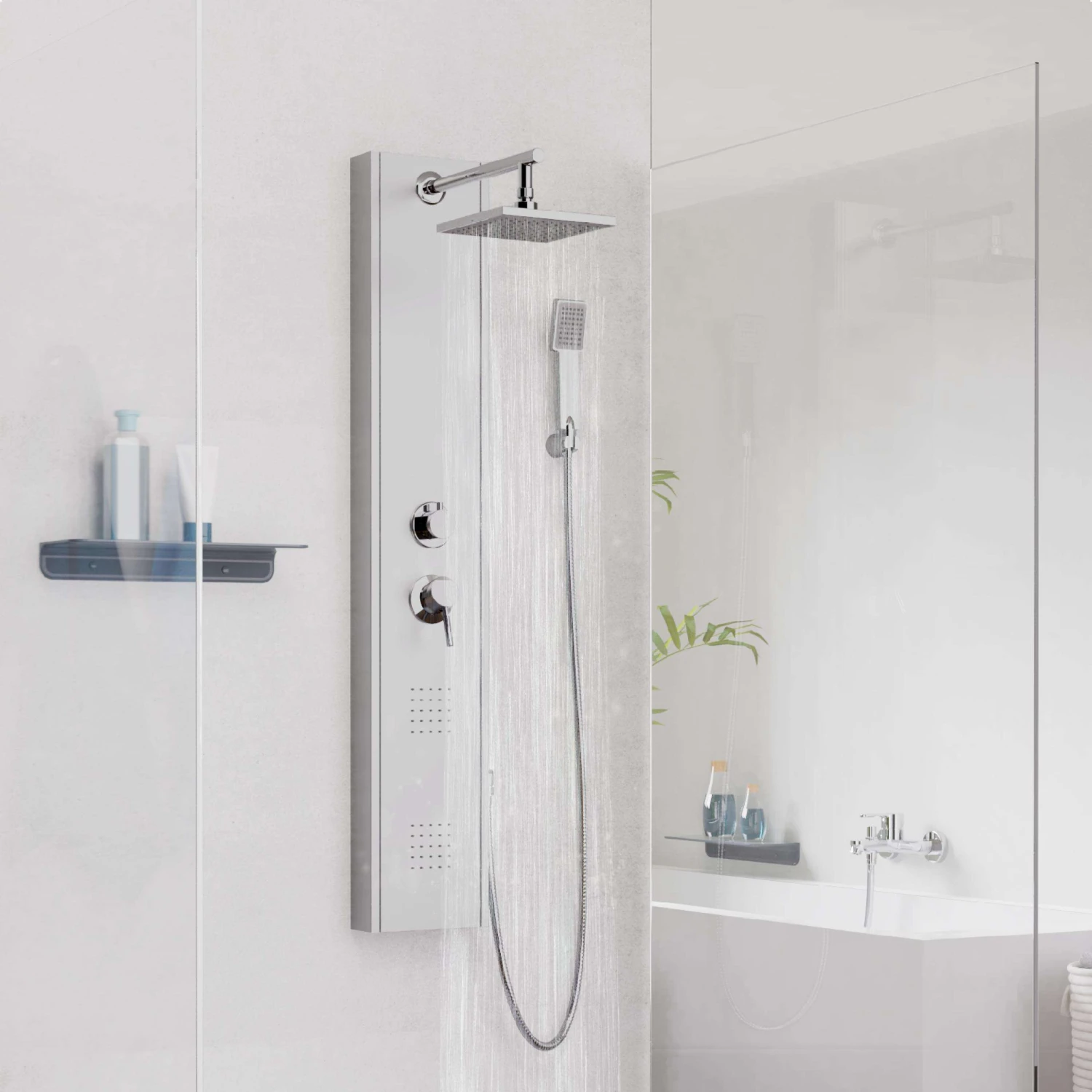 - das ausgeschriebene Duschpaneel