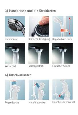 - Verbrauch bei 3 bar: Handbrause 7 l/min., Kopfbrause 9 l/min.
