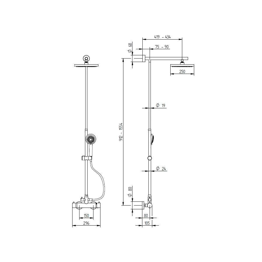 - Maße: ca. H 912 – 1554 x B 230 mm x T 419 – 434 mm