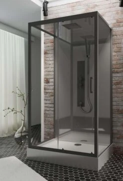 - inklusive Duschwanne in hellgrau mit Schürze & Ablaufgarnitur